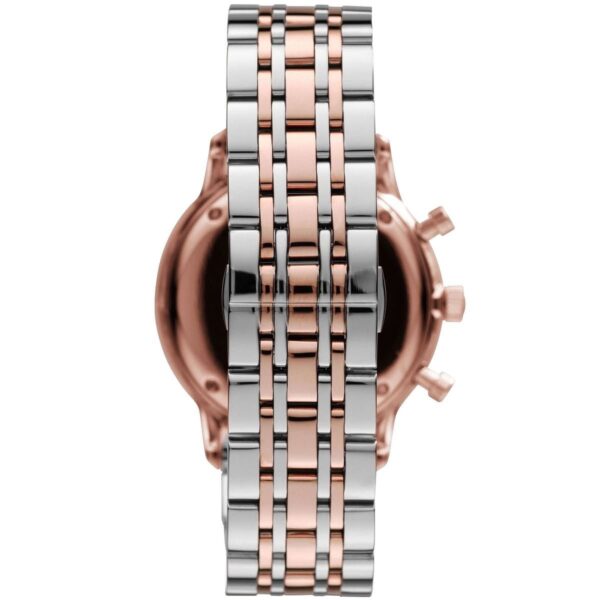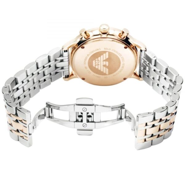 The stainless steel case offers durability and a polished appearance that feels premium on the wrist. Its ergonomic shape ensures comfortable daily wear, while its slim profile enhances versatility for different wrist sizes. The bracelet showcases a perfect blend of brushed and polished textures, adding depth and sophistication. Thanks to its comfortable structure, the Emporio Armani AR1721 Gianni firstcopy men’s watch can be worn throughout the day without discomfort.