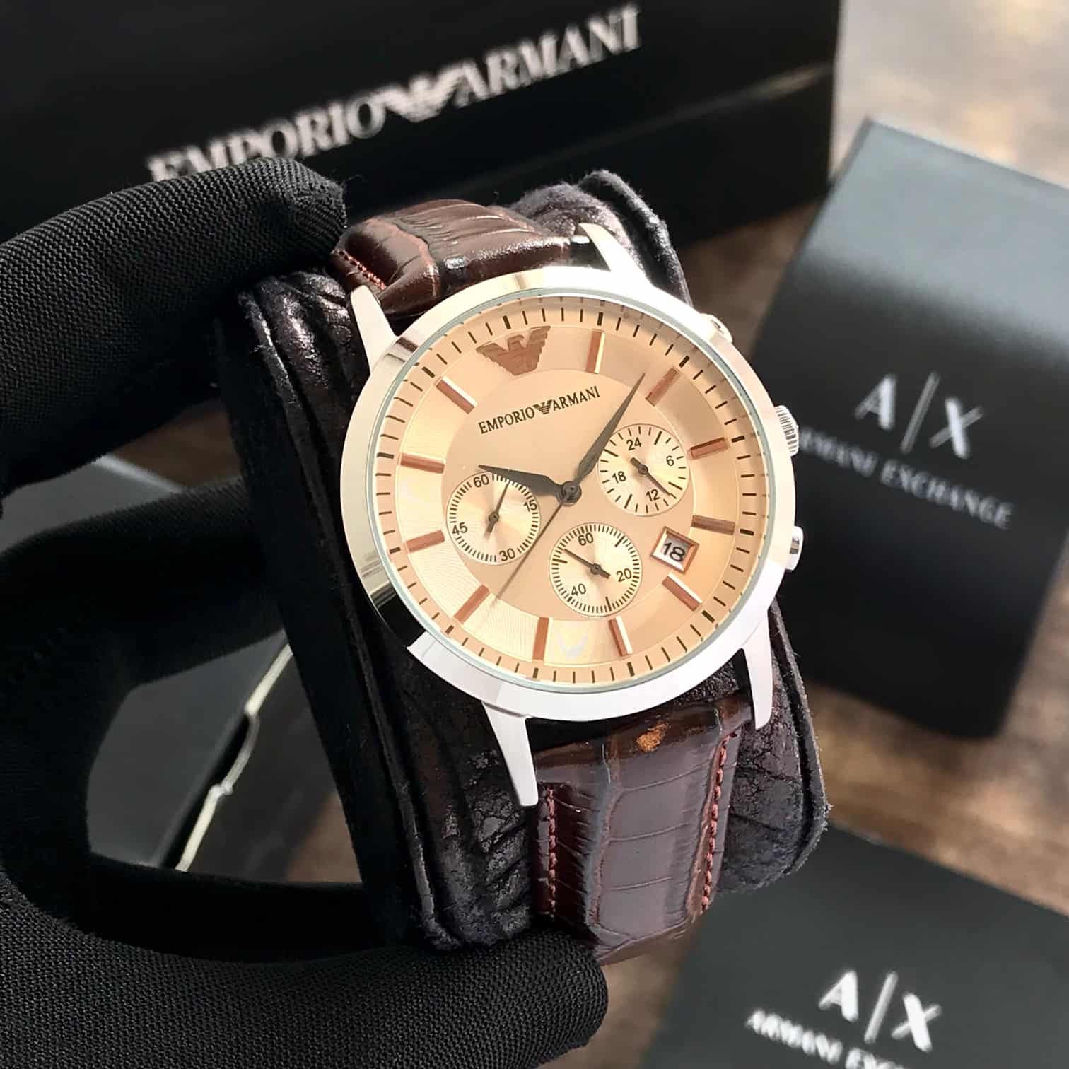 In summary, the Emporio Armani AR2433 firstcopy chronograph beige dial brown leather men's watch is the perfect blend of modern sophistication, comfort, and refined design. With its premium leather strap, elegant dial, and dependable chronograph performance, it stands out as an excellent choice for anyone seeking a classy, versatile, and luxury-inspired timepiece.