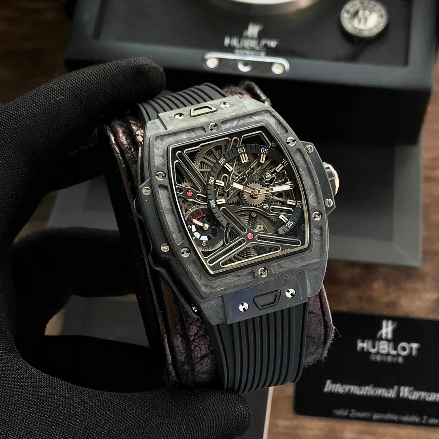 Every angle—from the carbon case texture to the open-work dial and tourbillon-style mechanism—reflects Hublot’s commitment to avant-garde watch design. This firstcopy edition captures the essence of the original Spirit of Big Bang Tourbillon while offering outstanding value, presence, and wearable luxury.