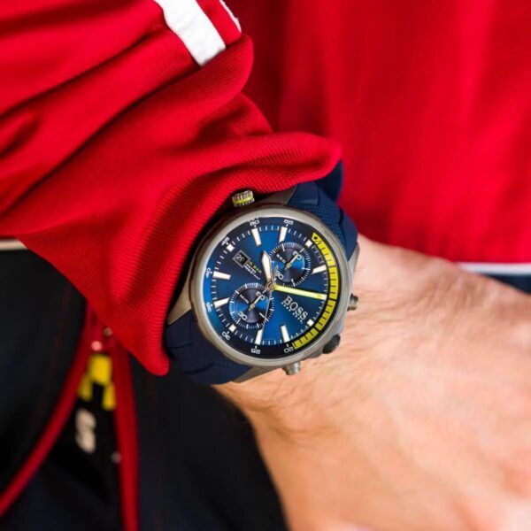 The Globetrotter 1513821 features a striking chronograph dial built with precision detailing and clean sub-dial arrangement. Each hand and marker is crafted to reflect the fine styling associated with Hugo Boss watches. The combination of modern design elements with premium finishing gives this watch a commanding presence on the wrist.