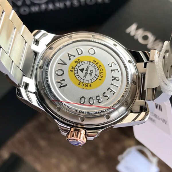 At the center of the design is a vibrant Blue Dial, featuring sporty detailing, luminous hands, refined markers, and Movado’s premium layout. The blue tone delivers elegance with a bold touch, shifting beautifully under different lighting. The contrast created by the polished markers enhances clarity, making the dial easy to read in all environments—whether indoors, outdoors, or evening light. The clean analog layout reflects Movado’s design philosophy of simplicity with sophistication.