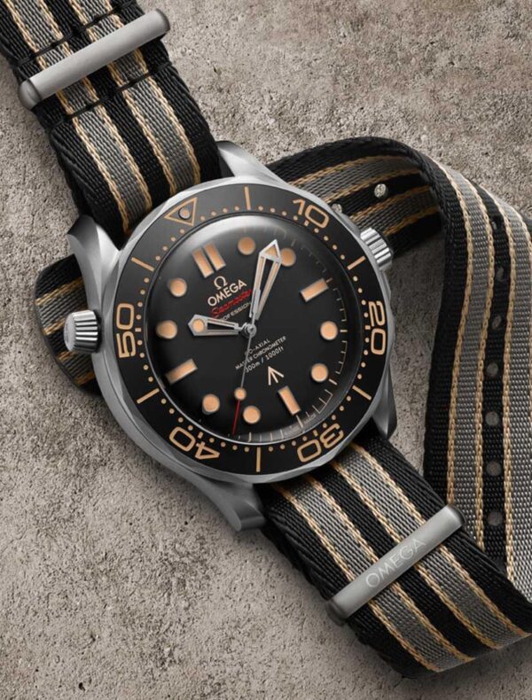 To complete the design, the watch features a Premium Stainless Steel Bracelet (variant dependent), offering durability, smooth articulation, and a secure clasp system. The bracelet elevates the overall aesthetic, giving the watch a refined, cinematic presence reminiscent of 007’s on-screen style. Some models may also include NATO strap compatibility, inspired by Bond’s tactical wardrobe.