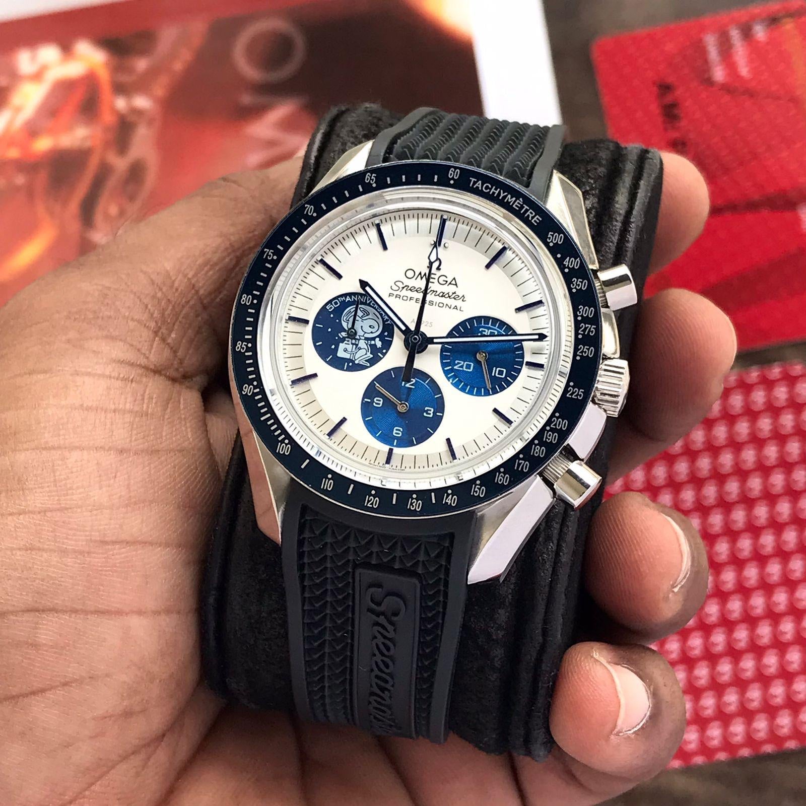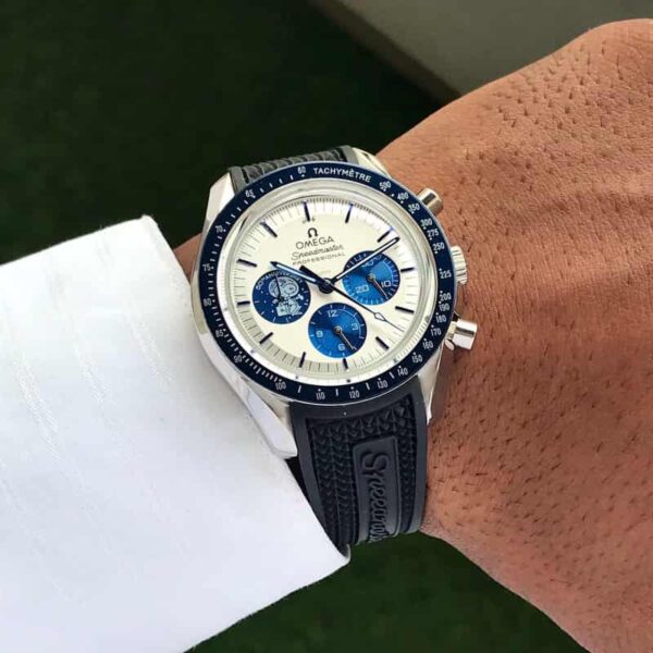 Omega Apollo 50th Anniversary firstcopy Limited Edition Black Rubber Strap Men’s Watch The Omega Apollo 50th Anniversary firstcopy Limited Edition Black Rubber Strap Men’s Watch is a tribute to humanity’s most iconic achievement—the first moon landing. Designed to commemorate 50 years of the Apollo 11 mission, this limited-edition model combines space-inspired aesthetics, premium craftsmanship, and bold Omega design DNA. This firstcopy edition mirrors the same lunar textures, mission heritage, and powerful presence associated with the original Apollo 50th Anniversary timepieces.