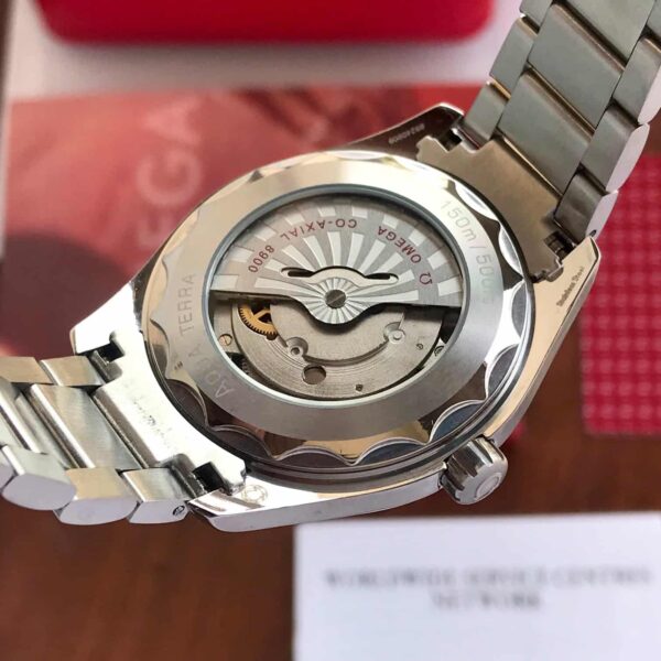The Stainless Steel Aqua Terra Case is built with Omega’s signature symmetry, brushed-polished finishing, and premium contours. Its comfortable ergonomics and balanced proportions make it an excellent daily-wear option. The case maintains the Aqua Terra’s refined essence—luxury design combined with the robustness required for modern lifestyles.