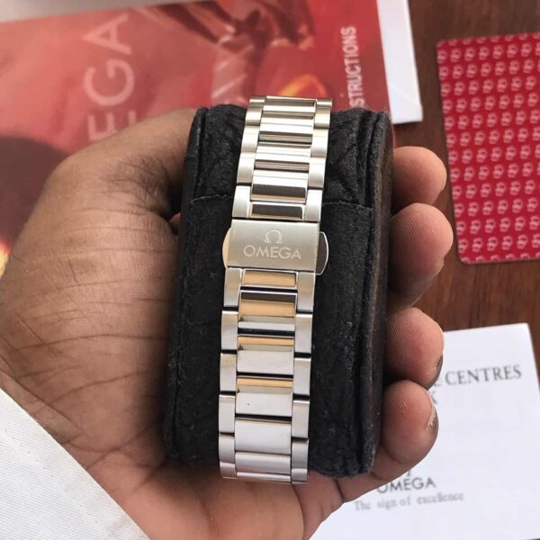 The centerpiece of the timepiece is its Striking Turquoise Dial, offering a clean, vivid tone that stands out with a fresh and modern character. Depending on the variant, the dial may feature Omega’s teak-pattern texture (inspired by yacht decks) or a flat sunburst style. Polished indices, luminous hands, and sharp detailing complete the layout, ensuring excellent readability while enhancing the watch’s sophisticated design. The turquoise color adds a youthful, fashionable, and luxurious flair—making it suitable for both formal and lifestyle wear.