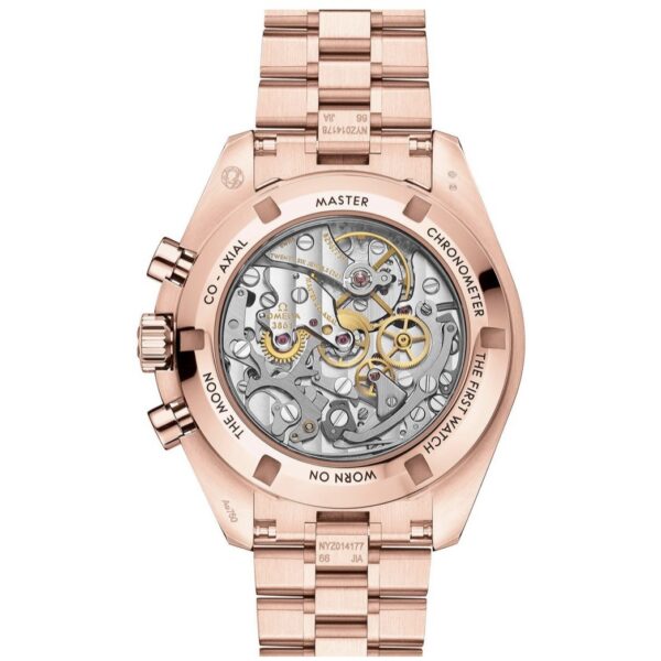 A Stainless Steel Bracelet completes the watch, offering durability, ease of wear, and a high-end finish. The bracelet’s solid links, smooth articulation, and secure clasp system ensure comfort during long hours of daily wear. Whether paired with shirts, denim, suits, or jackets, its versatile design complements the Moonwatch’s timeless styling.