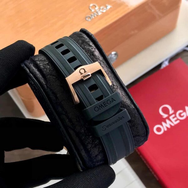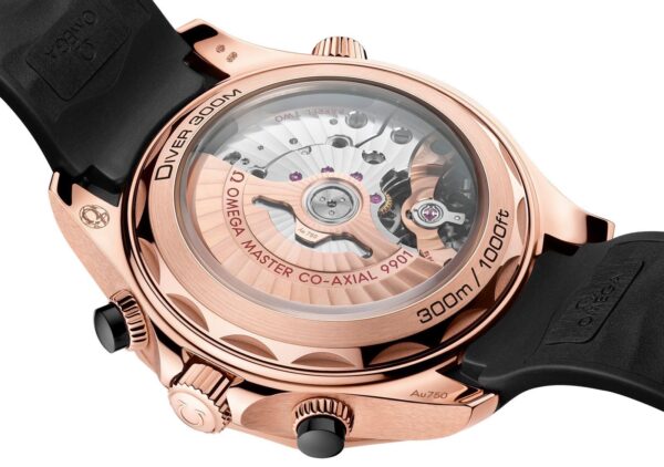 The watch features a Bold Dive-Style Dial, enriched with Omega’s signature wave-textured pattern (variant dependent), luminous hour markers, and polished chronograph hands. The deep, high-contrast detailing ensures maximum readability whether underwater, in bright sunlight, or in low-light environments. Functional sub-dials enhance the chronograph layout, adding visual depth and sport-luxury identity to the piece.