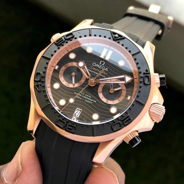 Every element—from the detailed chronograph sub-dials to the polished hands and high-quality movement—reflects Omega’s dedication to design, durability, and premium craftsmanship. This firstcopy edition offers impressive accuracy in appearance, strong wrist presence, and outstanding value for chronograph and diver-watch lovers.