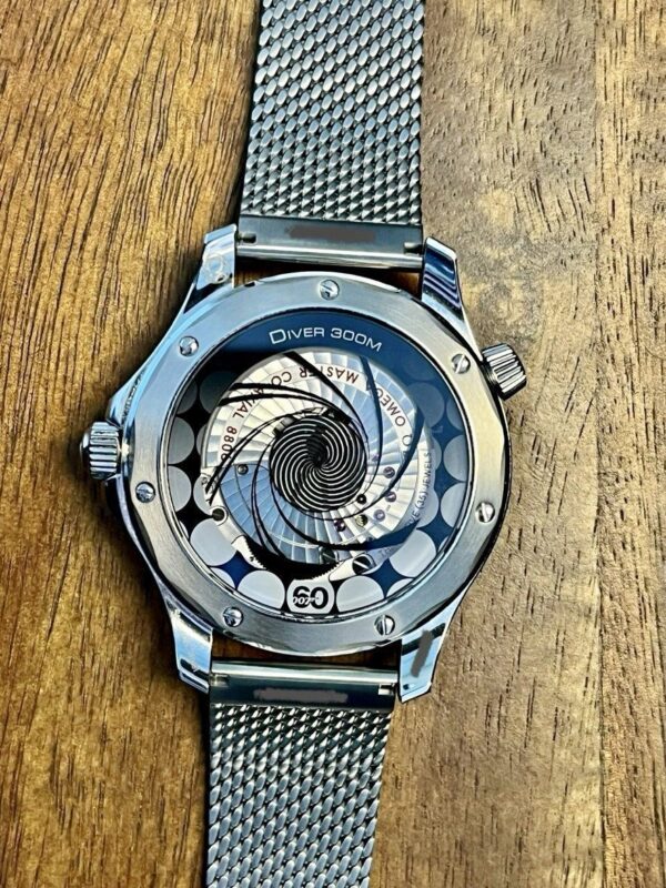 The watch features a Stainless Steel Diver 300M Case built with Omega’s signature polished-brushed finishing, muscular curves, and iconic helium escape valve (variant dependent). The case ensures strong wrist presence while remaining comfortable for full-day wear. With its professional diver structure and Bond-inspired identity, this special edition stands out as both a luxury piece and a collector’s item.