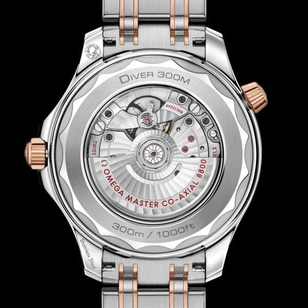 The Two Tone Stainless Steel Case enhances the watch with a richer, more luxurious visual appeal. Polished gold-tone accents blend seamlessly with stainless steel, delivering a balanced combination of strength, elegance, and modern sophistication. Designed with ergonomic proportions and premium finishing, the case offers excellent comfort for daily wear while showcasing classic Seamaster styling.