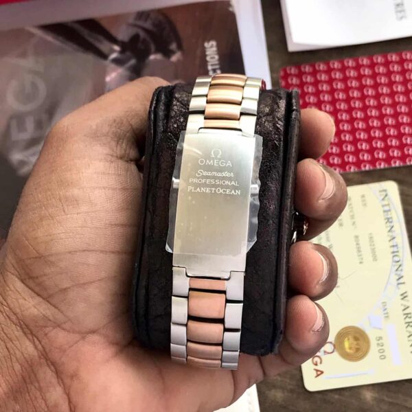 The Stainless Steel Case reflects Omega’s iconic Seamaster Professional design, with polished–brushed finishing, angular contours, and a confident presence on the wrist. Engineered for durability and style, the case ensures comfort even during long hours of wear. Its diver-style build and ergonomic profile make it suitable for everyday use or active lifestyle demands.