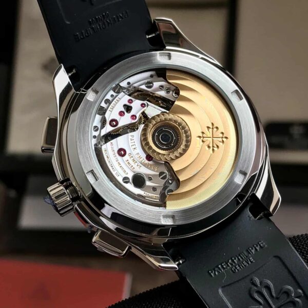 The premium stainless steel or rosegold-tone case (variant dependent) elevates the visual appeal with its elegant brushed and polished finishing. The rounded-octagonal shape—a hallmark of the Aquanaut—delivers strong wrist presence while remaining comfortable and stylish. Its refined geometric profile reflects Patek Philippe’s tradition of blending artistic design with practical engineering.
