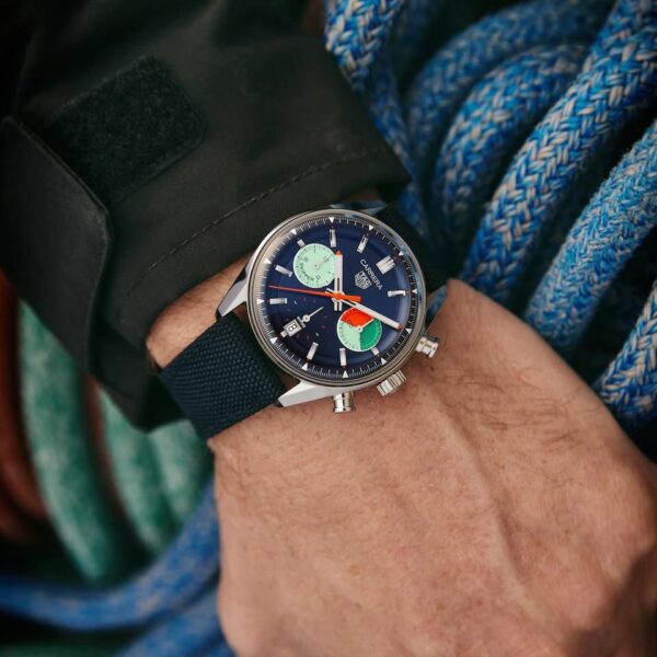 This Tag Heuer Grand Carrera men’s clone watch features a premium stainless steel bracelet (or model-specific strap), delivering comfort, durability, and a polished finish. The metallic look complements the skipper-themed dial perfectly, creating a balanced and refined aesthetic suitable for a wide range of outfits. With free delivery, this stylish timepiece becomes even more attractive for collectors and buyers.